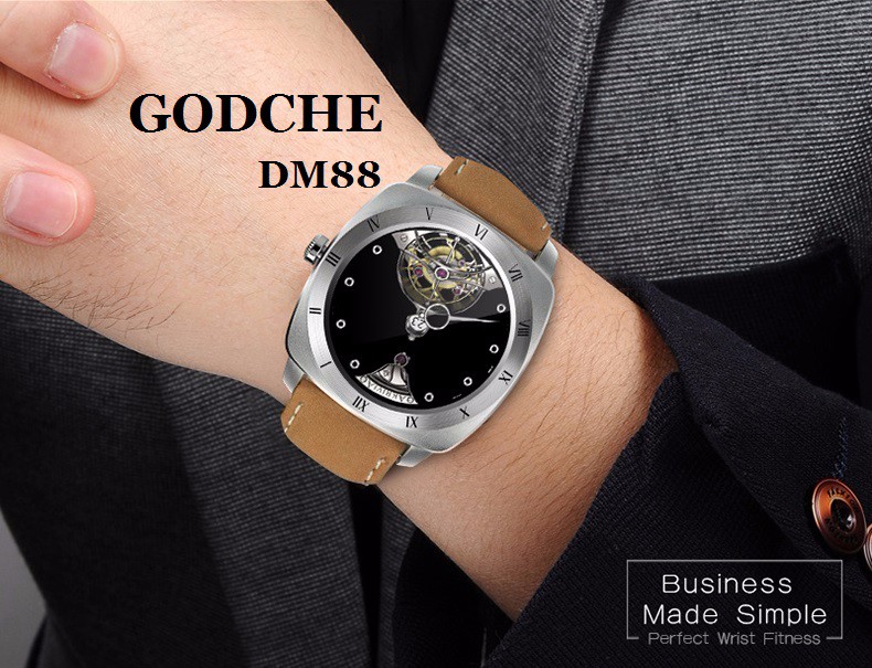 Siguiendo la linea de mostraros relojes inteligentes o smartwatch, pero que a su vez tienen un diseño elegante e innovador os presento a GODCHE. El reloj sigue una imagen Vintage, y su diseño es similar aun reloj convencional con correa de cuero y caja esta disponible en color dorado, plateada o negra.